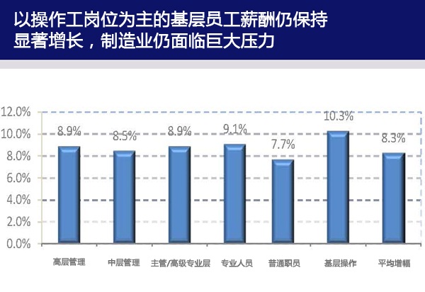 ●中国操作工岗位的薪酬增幅在亚太区处于首位。中国企业已丧失“中国制造”的优势